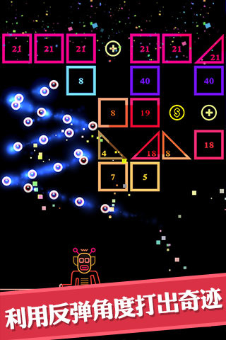 尽可能的利用反弹,打碎画面上所有的方块吧!