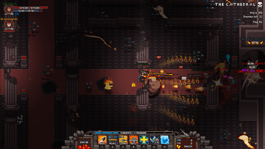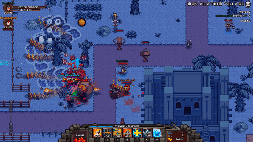 《英雄围城:口袋版 Hero Siege: Pocket Edition》是一款像素化的生存类围城游戏。游戏初始的时候,玩家会在火炉旁选取英雄,这个场景不禁让人想起了暗黑破坏神中也有类似的场景。 总体上来说,本作属于一款动作类型的生存游戏,玩家只能呆在一小块封闭的区域中,等待一波又一波敌人的来袭。玩家需要操控自己召唤的角色,在这片牢笼中生存下来。地图中随机散落了瓦罐,宝箱等物品,玩家需要搜集金币来购买一些道具,寻找钥匙来开启宝箱获得稀有的武器和能力,更要通过击杀怪物获取经验值来提升自己的特有技能。