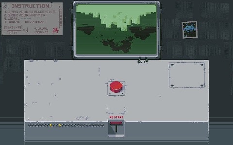 在游戏中,玩家要为一名去上厕所的同事代班,他对你千叮咛万嘱咐,不能碰周围任何东西,而事实是,你的周围除了一个神秘面板和红色按钮外也的确没有其他东西可以碰了,所以要如何控制自己的好奇心不去按他呢?事实上你只能按它,然后准备好接受接下来各种意想不到的挑战吧! 虽然出发点有点没头没脑的,不过 Steam 上的不少网友表示:这是一款莫名其妙的解谜游戏,却又莫名其妙地有意思;最开始冲着《请出示文件》而来,最后被它的蛇精病打动了。你准备好迎接好奇心带来的后果了吗?