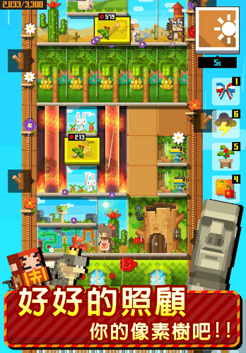 《动物方层树》是一款休闲像素游戏,利用8位元像素画面打造出可爱动物世界,玩家依照自己喜好,层层往上堆叠属于自己的大树,游戏没有关卡限制,只要完成指定任务,用心滋养灌溉,有机会让大树茁壮成长像月亮一样高,加上没有复杂攻略进程,简单上手玩法,让您随时随地纾压,一整天好心情。喜欢此类游戏的玩家快来下载这款《动物方层树》体验试玩吧!