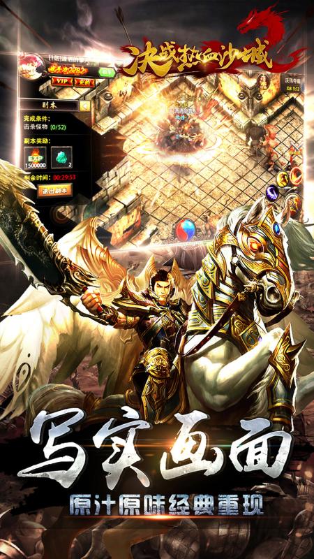 《决战热血沙城》是一款角色扮演类游戏,写实画面,原汁原味经典重现呼朋唤友,和兄弟一起铸就辉煌即时PK,媲美PC端游体验,万人攻城,风云再起!同时玩家和公会兄弟一起闯天下,打出一片属于你的传奇!经典传奇角色,战士,法师,道士,大招再现!和兄弟共赴沙场,轻松打怪!