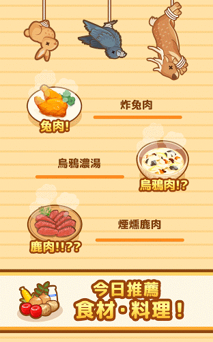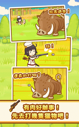 野兔和乌鸦还有山猪!? 从打猎开始,调理各种野味吧! 你的餐厅今天就要开张啦! 野兔和乌鸦...还有山猪!? 没想到居然这么好吃! 动手调理各种野性十足的野味料理 目标是成爲一家超人气餐厅! 从打猎开始,经营自己的野味餐厅 「狩猎小厨」餐厅,今日开张! ★狩猎小厨这么玩★ -在野外狩猎各种猎物!! -调理美味的野味料理!! -以美食飨客,赚取金币!! -扩大餐厅规模,开拓广大的世界!! ================================= 继累积600万下载的人气游戏「活下去!曼波鱼!」之后 SELECT BUTTON的放置类养成游戏第二弹来了! 特别是喜欢温馨可爱的牧场游戏 或是农场游戏的人,一定要玩玩看! ※注意事项 -实际调理野生肉品时,请务必遵循正确的处理及调理方式 以防止诸如各种传染病等对您的健康造成危害。 -实际进行捕猎时,请务必遵守各项相关的法律规定。 提示 :
