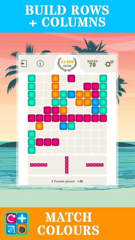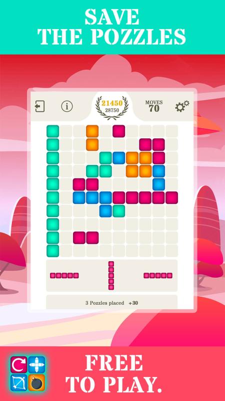 《Pozzle Blocks》是一款休闲的拼图类游戏。将它们放置在游戏网格中,在网格填满之前完成行,列和4x4颜色方块。