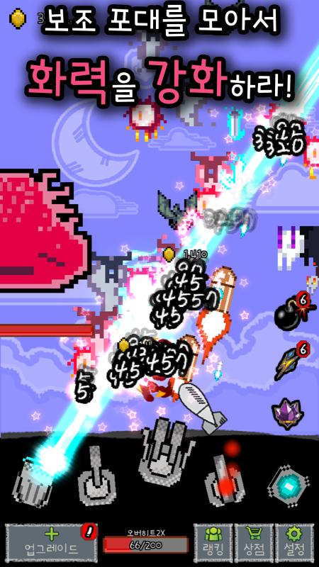 《榴弹专家》(Cannon Master)是一款像素风射击游戏,怪物从天上入侵,玩家需要建立打败它们,在一边击杀怪物后,可赚取金币用来升级大炮和,还有各种boss战、Raid模式,过热模式,难度更高,奖励也更加丰厚喜欢此类游戏的玩家快来下载这款《榴弹专家》体验试玩吧!