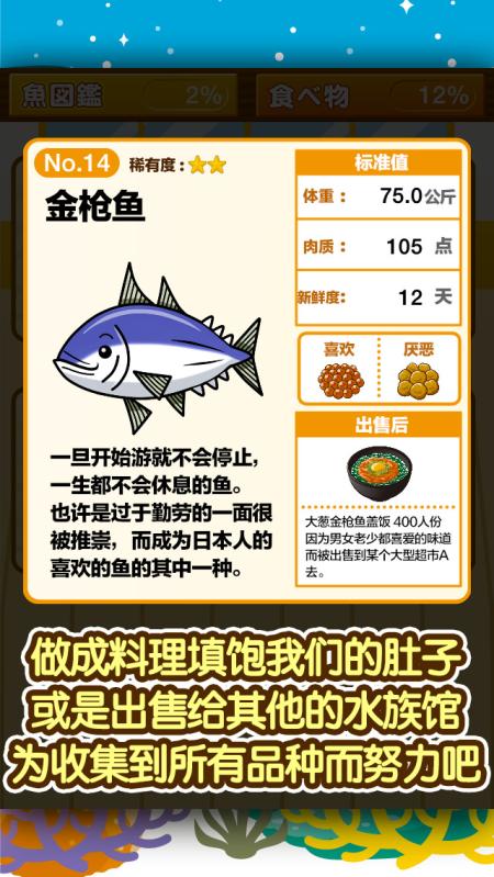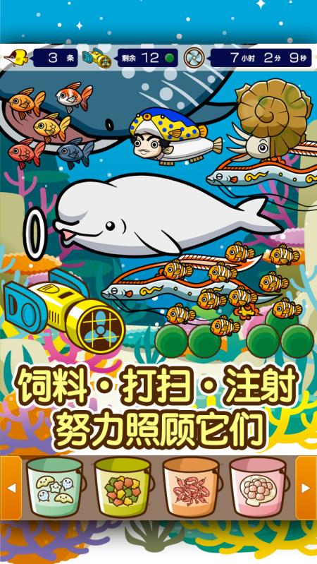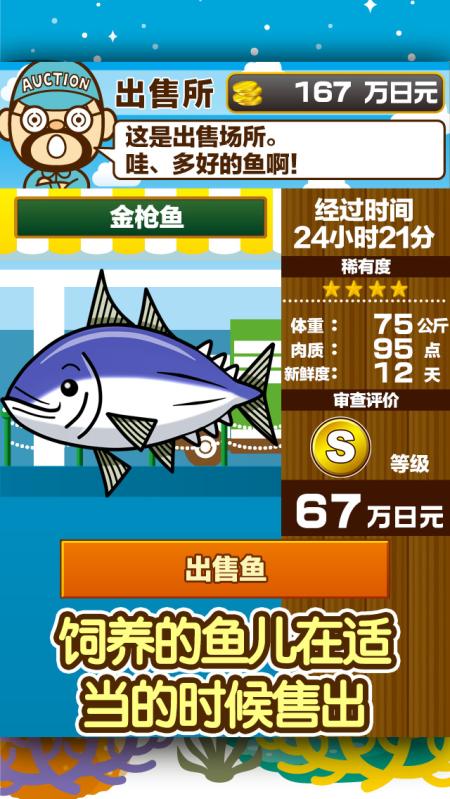 《水族馆-养鱼》是一款休闲类的养成游戏。从今天开始经营水族馆。让你成为水族馆的主人吧!购买鱼后努力的饲养。但是,为了水族管的发展,必需花钱。努力饲养鱼后出售,赚钱。把许多的鱼饲养长大后,扩建水族馆成为出色的经营者吧。