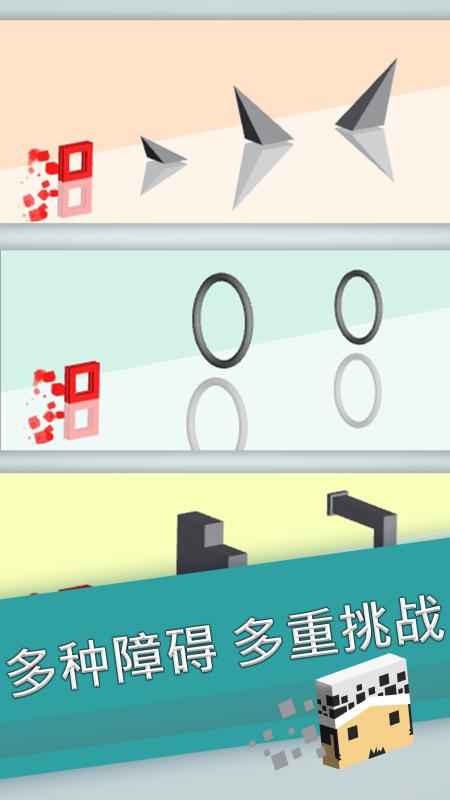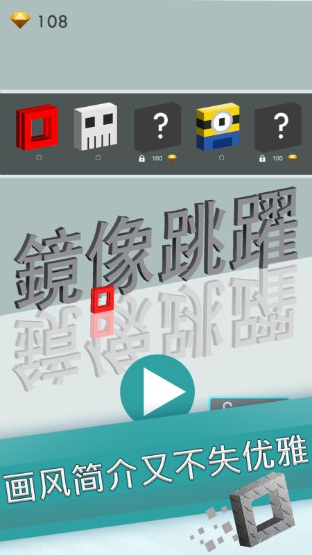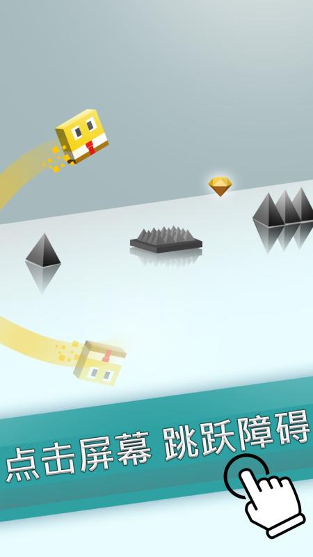 《镜像跳跃》是一款敏捷挑战游戏,点击屏幕即可让小方块跳跃障碍,连续点击屏幕两次还可以让小方块在空中连跳2次!在游戏过程中,玩家需要同时控制两个小方块:一个在镜面上的方块,另一个在镜面下的反射方块。当镜面上的小方块跳跃时,镜面下的小方块也会跟着一起跳跃。同时镜面上的障碍物也会反射形成镜面下的障碍物,奔跑过程中,千万不要忘了它们哦!