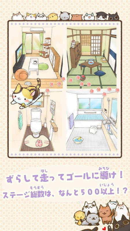 《神奇的猫咪华容道 ねこずらし~にゃんだふる~》是《猫咪华容道》的续作,游戏的玩法继承前作:玩家按照要求移动猫咪,让它们到达终点。游戏拥有200多个关卡和不同的地图,并增加了各种道具和挡道的猫咪。通过了相关关卡后,玩家可获得对应的肉球印章,集齐一定数量的肉球印章便可以兑换喜欢的猫咪。猫奴快点下载来玩吧!萌死你不偿命!