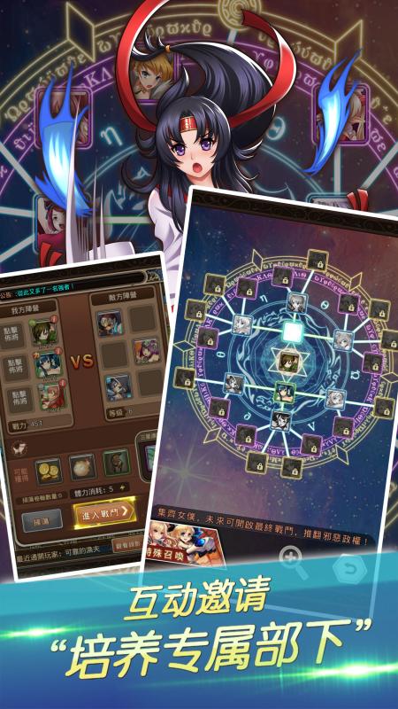 《百战少女》是一款根据动漫改编的卡牌策略游戏。玩家将成为次元大陆的一位不断收集部下、征服各色最强少女的霸者。通过游戏内置的特色养成系统,玩家可以不断加深双方亲密度,并培养强化她们的战斗力,直至推翻魔女的统治,一统次元世界!