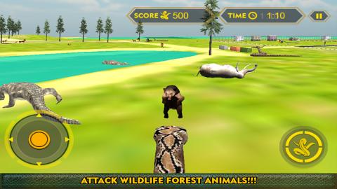 《蛇的捕猎行动》是一款模拟蛇行动的游戏。巨型水蟒是饿了,他是在丛林中寻找食物。现在控制凶猛的巨型蛇和追捕不同的野生动物,以满足它的饥饿感。躲在树后面,攻击动物静静地让他们震撼。真正的蛇攻击模拟器是控制森林和城市环境的一个巨大的蛇。你的任务目标还包括捕杀大象,狼,狮子,马和斑马。