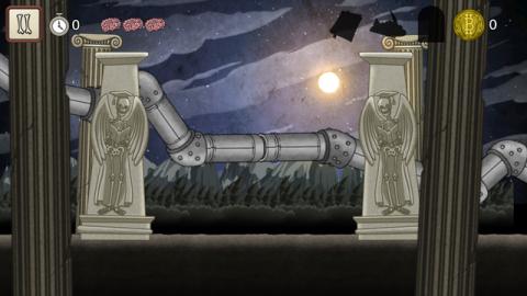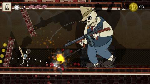 《亡命骷髅》(Skullduggery)是一款暗黑风格的益智弹射游戏。游戏中精心设计了丰富的关卡障碍。玩家需要利用弹射骷髅头去通过关卡突破障碍完成挑战。游戏玩法十分简单,玩家只需要控制骷髅头将自己的头盖骨掀开,然后通过抛物线式的弹射玩法,连头带脑地向前飞出去,在“自由飞翔”的过程中,还要不断的拾取沿途的金币,避开障碍物的伤害。喜欢此类游戏的玩家快来下载体验吧!