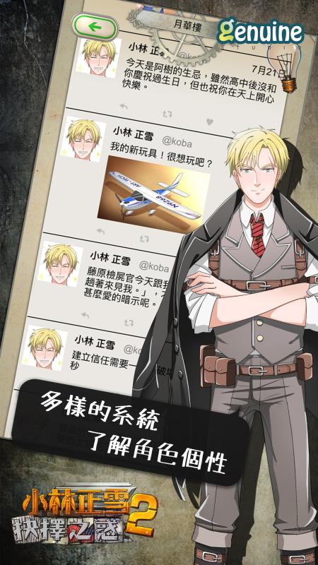 《小林正雪2:抉择之惑》是一款集合了案件推理、悬疑解谜和密室侦查的侦探推理游戏,在上部《小林正雪:复仇之密室》以其精美的人物设定,值得推敲的故事剧情吸引了大部分喜爱破案游戏的玩家。在新作中玩家将会面对更多更为困难和棘手的案件,这次游戏中还新加入了许多系统玩法将会令玩家的破案手段更加多样性。除了延续上部作品的密室逃脱、现场调查等情节外,还加入了可以查看游戏提示系统,系统会以主角心里话的形式给与玩家帮助。
