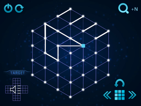 在游戏里,玩家要扮演的是人工智能Zasa,要完成Mason博士给你的任务,玩法很简单,游戏的左下角有一个图样,你需要在屏幕中间的立方体上把节点连起来,让这个立方体展开之后呈现左下角显示的图样。