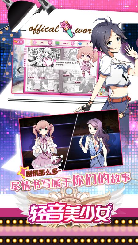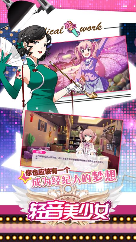《轻音美少女》是一款剧情丰富、浪漫曲折的模拟明星养成卡牌手游,游戏中玩家扮演一个家道崩坏的富二代,在儿时同伴的帮助下立志成为超级经纪人,带领旗下萝莉、萌娘,御姐等风格各异的青春偶像艺人实现音乐梦想,最终奇迹般地完成传奇家族振兴!