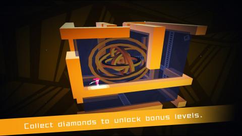 可以看到这个立方迷宫设计的比较巧妙,但是它并没有类似《纪念碑谷》那样的错觉效果,在关卡中你除了要让主角到达终点之外,还要兼顾收集钻石以及钥匙,如果没有拿到钥匙那么就无法进入下一关卡,好在每一次闯关系统都没有限定时间,所以玩家大可以慢慢观察迷宫路径来做出正确的移动。