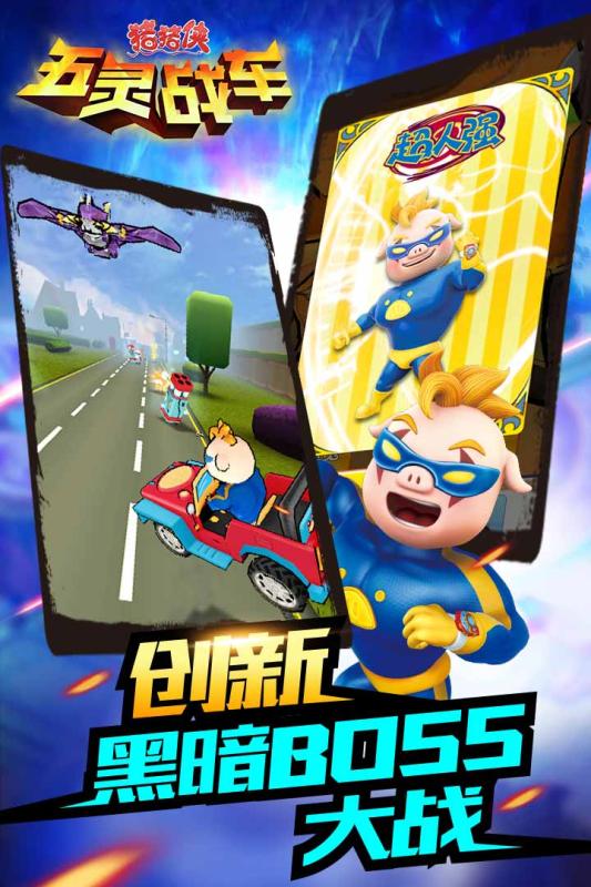 《猪猪侠五灵战车》是一款全新特色跑酷的赛车游戏。融合了猪猪侠动漫、兽形变身、卡片、跑酷、赛车等元素和玩法。国内首创3D卡通渲染角色和赛车,设计精巧的关卡,刺激的BOSS战。