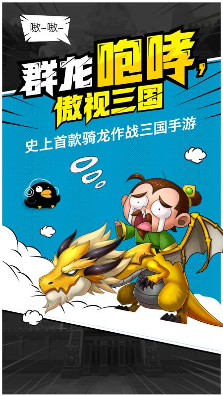 三国手游新纪元,骑龙作战傲视群雄!可以骑龙作战的三国手游《龙蛋三国》来啦!架空大家熟悉的三国历史,为你呈现龙版三国!化身三国名将,驯服你的专属神龙,进而逐鹿中原一统天下!游戏不仅采用武将和小兵齐上阵的即时战斗方式,更融入大量恐龙元素,让每个武将都能骑乘驯服的恐龙一同作战!纵横结盟式的公会对战、三足鼎立式的国战,众多饱含三国情怀的PVP玩法,更将给玩家带来与众不同的三国手游体验。