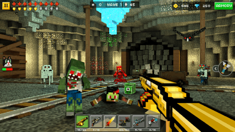 《3D像素射击 Pixel Gun 3D PRO Minecraft Ed.》这是一款像素射击类游戏。敌人的数量不断增加,经过短暂的游戏时间,你就会有成群的僵尸从四面八方攻击你,让你不能放松......当死亡接近,你可以躲开他们的攻击,像一头猎豹,迅速跑开。游戏中你只有射杀所有的僵尸才能进入下一关。