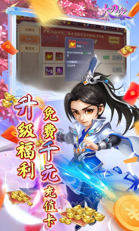 《大刀客(魔改养龙寺刷充)》上线免费进入养龙寺超级地图刷充值卡,还送vip9,元宝58888,礼金88888,本游戏是一款国风动漫MMORPG手游,萌系画风,多种职业,可爱侍宠,趣味坐骑,百变幻化,带你领略3D武侠大世界!超级地图挑战BOSS,海量充值卡、寻宝钥匙和盲盒,拿到手软,操作简单,激烈团战,还你一个真实刺激的战场。高自由度的体验邀你来感受,引人入胜的趣味情节让人爆笑不止。游戏加入了大量新奇玩法,强大的社交互动系统!各路大侠还等什么,再不玩你就老了,甭说修仙了!人在江湖,身不由己,等你一决高下!