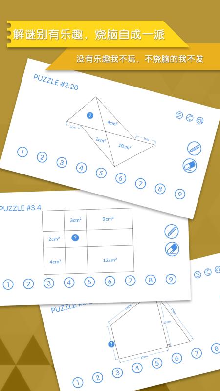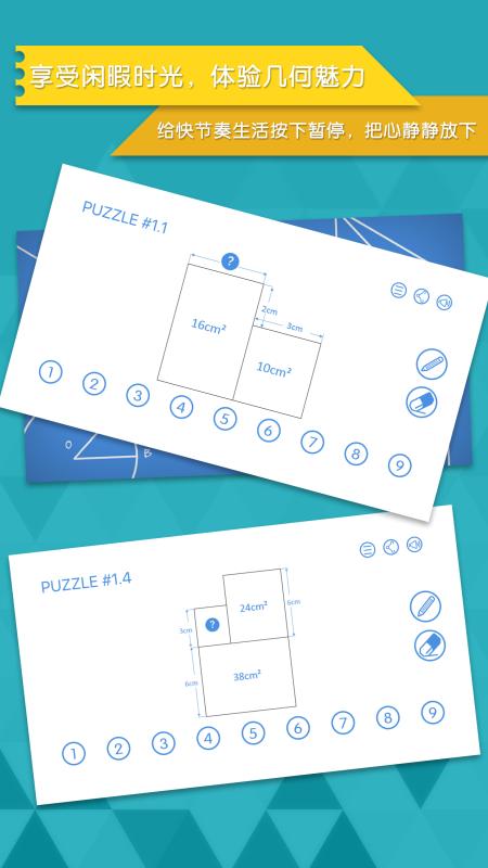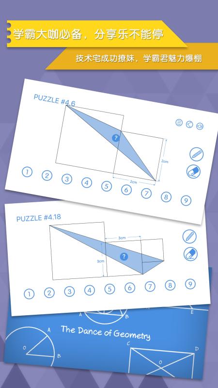 享受闲暇时光,体验几何魅力。简单原理上手,步步推理耐玩。揭秘别有乐趣,烧脑自成一派。学霸大咖必备,分享乐不能停。一款非常有意思的数学小游戏,虽然只是简单的公式计算,但是要快速得出结果也不是一件容易的事,想试试吗?