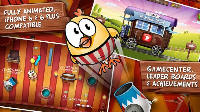 本作是小鸡归巢:Drop The Chicken 的续作。相比起第一代,第二代走的依然是类似的玩法,类似的画风。游戏的画面效果非常细腻,同时配色也有一定的改变,更加鲜艳了。游戏玩法延续,玩家需要将小鸡护送到水桶中,路上会有各种障碍,需要利用各种道具进行通过,能够顺路吃到小虫获得星星那是极好的了。有兴趣的朋友试试吧!