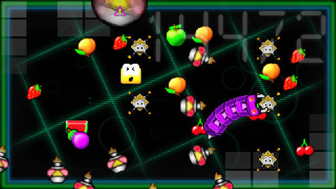 Deep in the electro-abyss lives a little robot who loves to eat exploding fruit. He also quite likes staying alive. That’s where you come in…
