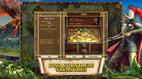 On his way to a gigantic volcano visible afar our brave hero will be accompanied by his fellow crew members. Together they will build forts, discover ancient ruins and never-before-seen creatures of the forest, defend against the Neanderthals and help the locals.