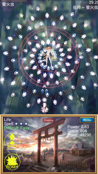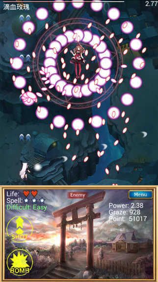 沿袭了东方系列STG的传统玩法:华丽满屏的弹幕 + 优美激昂的BGM