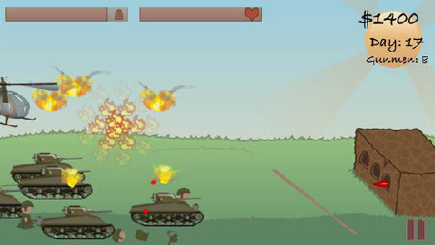 Bunker Battalion is an addicting, free to play game in which you must defend your bunker from invading forces. Fight off waves of troops, vehicles, tanks, and helicopters for as long as you can. Thankfully, you aren't alone in your efforts. Gunmen will help you shoot down incoming units, and power-ups will drop from defeated enemies. How long can you last?