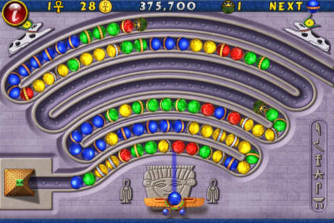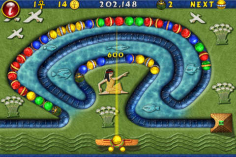 The goddess Isis enlists you to battle the god Set in his diabolical plan to annihilate the mystical lands of Ancient Egypt. Answer her call to destroy chains of rolling colored spheres unleashed by Set’s evil minions. Use your quick wits and quicker reflexes to rescue the glorious pyramids from pitiful peril!
