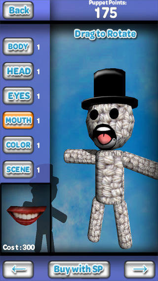 Customization is extensive with the ability to change your puppet's body, hat, eyes, mouth, material and choose from 10 different backgrounds to give almost a million unique combinations.