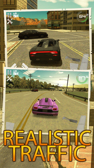 - Realistic 3D graphics. You will live real car driving experience with different cars, cities, racing circuits and desserts.