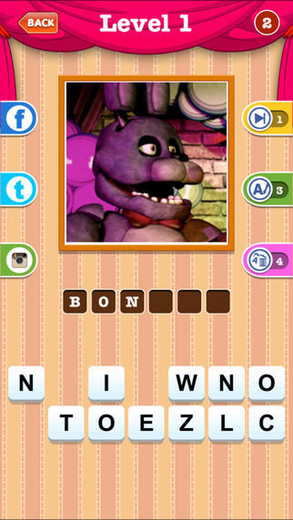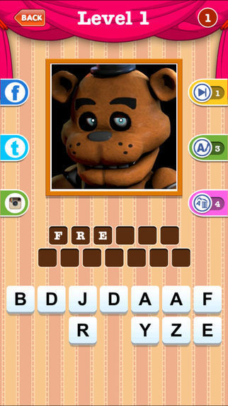 It's your job to guess the name of the Five Nights At Freddy's characters based on the photo or image shown on your mobile device. Can you name them all or will you upset the Animatronics? Guess all, the detailed character images of FNAF series. This game is sure to challenge even the biggest fans out there. This app is constantly being updated and features a lot of character images and photos that will surely to excite all types of FNAF fans.