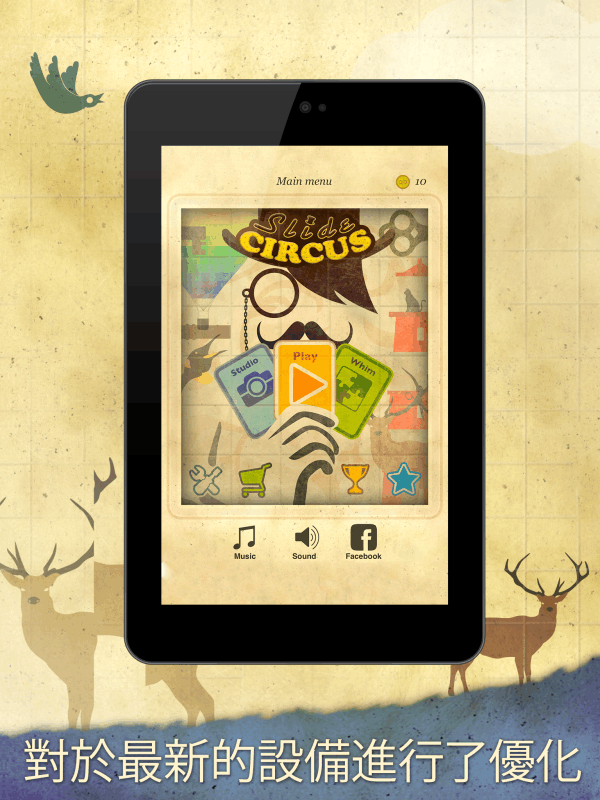 展开想象。打破常规。 “我最近在手机上画了只蝴蝶。 我玩得实在太入迷,连喂猫都忘得一干二净。” 迎接全新的滑动拼图游戏 • 跳出思维框架 一经接触,你会立刻感受到这款游戏的与众不同。你可以将滑块移出拼图框架,然后他们会出现在另外一侧!这一简单的理念将重新排列图案变得轻松愉快。我们设计了超过 90 幅美妙拼图,在 HD 显示屏上能为您带来一场视觉盛宴。包括“翘曲图块”(warper)和“阻挡图块”(stopper)在内的神奇图块让游戏兼具趣味性和挑战性。 • 创造、分享 导入自定义图像,创建属于您自己的拼图。游戏提供了诸多精彩的编辑功能供您选用,如色彩滤镜和表面修正等等。将您的得意拼图作品与您的所有朋友分享! • 人工创造 使用艺术加工流程软件插件,让您的手机创造出无限的新拼图,这是见证奇迹的时刻! • 同场竞技 加入“Slide Circus”社区,通过游戏服务张贴并对比您的分数。 游戏特色 ✓ 界面精致 ✓ 规则简单 ✓ 特有的陷阱图块 ✓ 精美绝伦的图像 ✓ 无限的关卡 ✓ 创造并分享 ✓ 原创音乐 ✓ 游戏服务成绩 ✓ 游戏服务排行榜 ✓ 免费更新