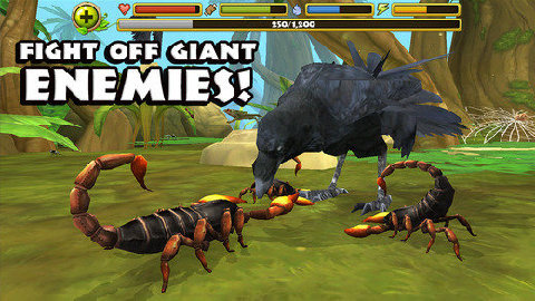 + EPIC BATTLES - Use your powerful pinchers and poisonous stinger to fight erous animals and catch tasty insects!