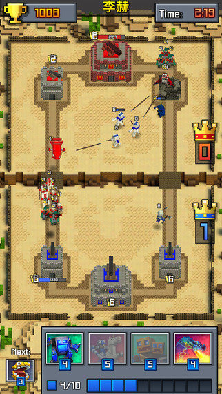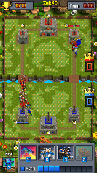 Fans of strategy games, rejoice! The time of epic battles and desperate duels has come! Discover and craft lots of cards behind each of which there are creatures of Royale Block world: pixel dragons and knights, pocket zombies and mummies, combat robots and giant aardvarks, as well as many other incredible beings. Defeat your enemy in a duel by going round his troops and demolish the defensive towers. You will get a crown of king as a token of your victory, as well as win renown in the arena!