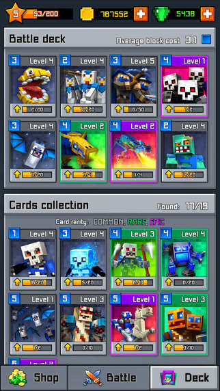 - Win and get a wide variety of chests full of treasures, collect new powerful cards and improve the ones that you already have; Make your own Royale Block deck full of unbelievable soldiers and war machines.