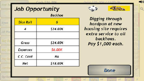 THE CONSTRUCTION GAME®, a Monopoly style board game, gives players a first hand try at making it big in the world of big equipment and big deals. Bid on jobs, buy dozers, backhoes, excavators, and scrapers, then put them to work. Build slowly or borrow your way to the top! There is no free lunch served at the job site. Be the biggest contractor in the valley.