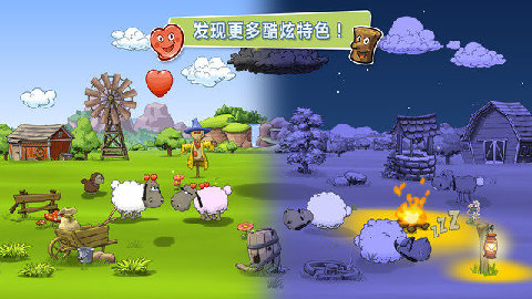 每只动物都需要你的关注!这些滚圆的绵羊喜欢休闲娱乐!让你的绵羊跳跃起来,并使用蹦床、跷跷板和秋千主动和牠们一起玩耍!旁观你的宠物们互相交流,给牠们一些物品,然后观察牠们的反应!使用有趣的物品自定义你的羊群牧场,并从狂野西域和海盗领域等不同设定中进行选择。旁观你的羊群白天不知疲惫地奔跑,而到了晚上就依着温暖的篝火而眠。尽可能让绵羊保持心情愉快、身体健康,防牠们变成天空中绵状的大云朵。