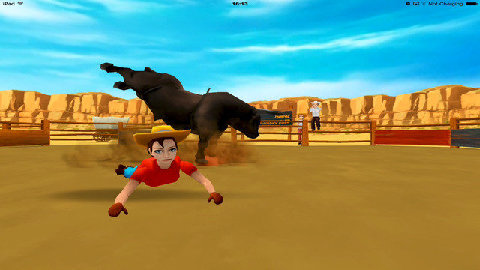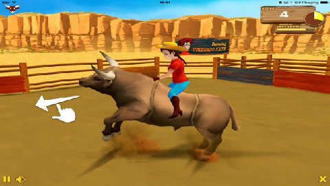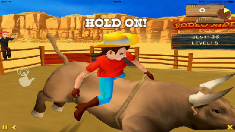 Keep the rider on the bull by swiping her back into place. Hold on when she is falling off, by tapping out the sequence that appears on screen! See how long you can ride the bull and challenge your friends to beat your score!