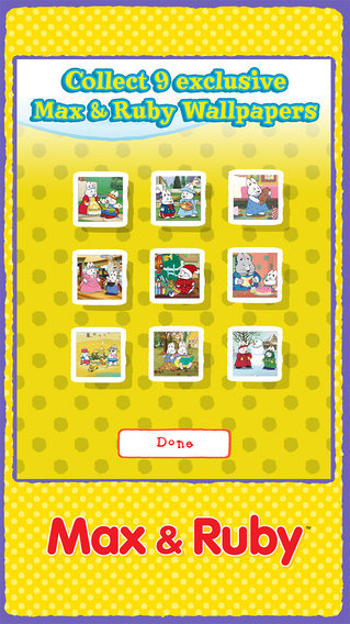 • Collect 9 exclusive Max & Ruby Wallpapers.
