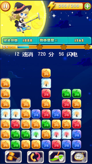 不会太难:游戏初期只有4色星星,让你熟悉游戏的同时,尽情体验爽快的超级连消