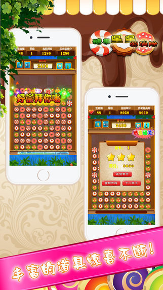 相信只要您喜欢消灭星星,消消乐,糖果粉碎等消除类游戏,本游戏一定会是您不可缺少的! 和其他消灭星星类游戏一样,游戏中你的任务是将同颜色连接在一起的糖果消除,点击两个或更多相同的糖果可以消除它们即可!