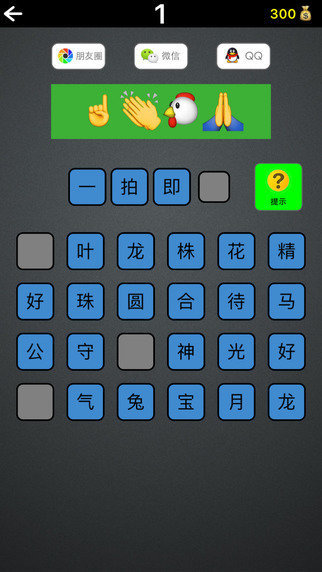 Emoji(表情符号)是人类交流方式一大鼓舞人心的进化,也是一门正蓬勃发展的语言,不久它就能成为足以和媲美英语的全球语言;我们为这门新生表情语言,特开发一款表情猜成语文字益智休闲游戏,通过表情符号来猜成语;中华文化,源远流长,成语更是中华文明的精髓,你虽才高八斗,出口成章,当我们精心挑选的表情组合为成语,无论是简单的勾勒还是生动的表情,都会让你猜对之后精神气爽,开怀一笑,恍然大悟.你可以分享给好友一起体验游戏的乐趣.赶快来试试吧
