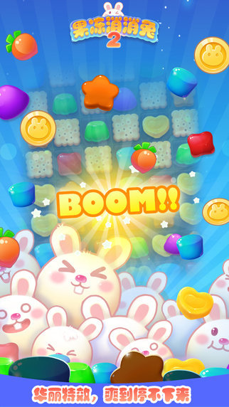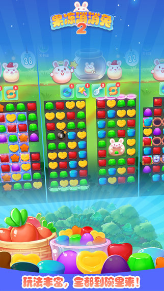 三色消除,轻轻一划,N多果冻从天而降,甜到你心里。