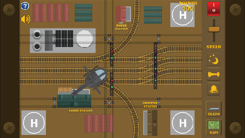 控制轨道上的转辙器来决定您的火车往哪儿走。控制您的火车速度。捡起货物加分。