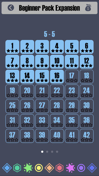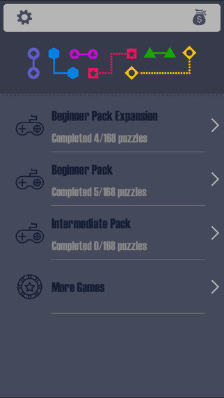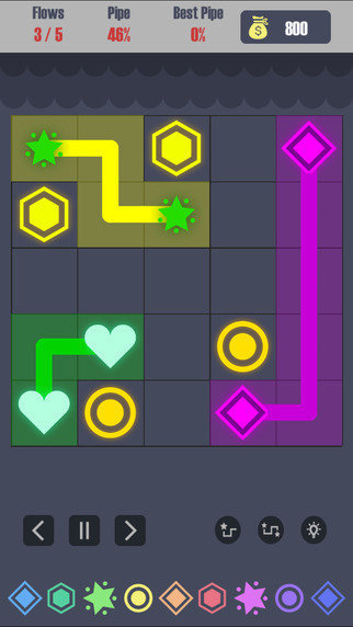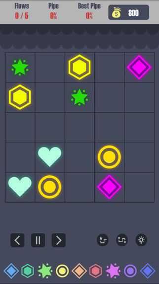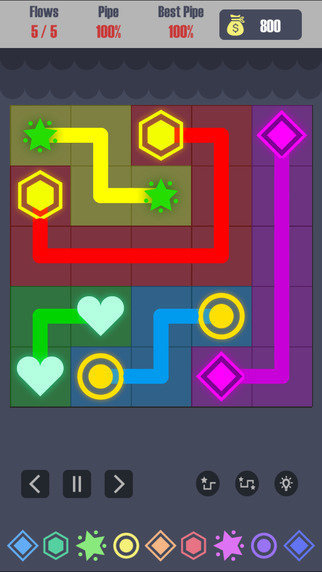 游戏提供了许多挑战性的关卡,有数千个谜题,漂亮的设计和炫酷的音效。你需要做的就是把相同的两个图案用线连接起来,如果能覆盖掉所有的方块更可以获得3颗星。