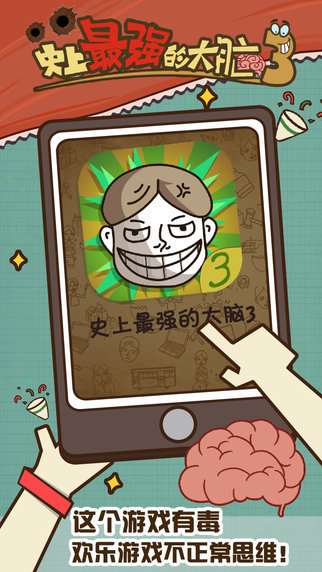 “史上最...”系列又添新伙伴啦,《史上最强的大脑3》。看名字是不是容易让人联想到最近很火爆的一档综艺节目《最强大脑》呢。不过人家那是真的在拼天赋技能考验智商,而这款游戏嘛...一向以秀外慧中自诩的小编只好呵呵了。虽然现在还在坚强地为大家介绍着这款游戏,不过一会会发生什么血腥场面可就难以预计了。如果突然做出什么发疯、摔机之类的举动,请大家予以谅解,人家毕竟是个妹子,人家心理真的承受不了了。