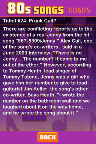 ** 25 unlockable trivia tidbits about the '80s artists and songs featured in the app!