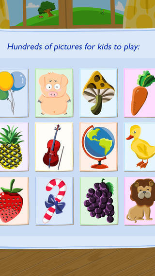 这里有几百张有趣的图片需要宝宝来完成,包含各种类别:动物、水果、蔬菜、玩具、乐器、海洋、农场。。。