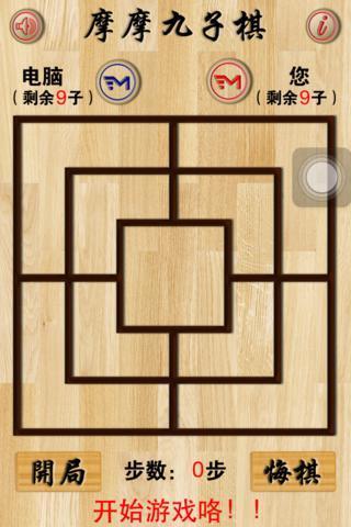 九子棋是一个非常古老的智力游戏。其历史甚至可以追溯到公元前1400多年的古埃及时代。棋盘有24个格点, 对弈双方各有九个棋子, **流下到棋盘的空位上。如果一方有三个棋子连成一线, 也就是形成一个mill, 就可以选择吃掉对方的一个棋子。被吃的棋子不可以是位于对方所形成的mill之内, 除非对方所有棋子都形成了mill。在九个棋子都布放到棋盘上以后, 可以沿棋盘上的线条移动到相邻的位置来形成mill以吃掉对方的棋子。一个mill可以开开合合重复使用。如果一方所剩下的棋子只有三个时, 棋子可以"飞"到任何位置而不受只能移动到相邻位置的限制。当一方只剩下两个棋子或者他的所有棋子都不能移动时就算输